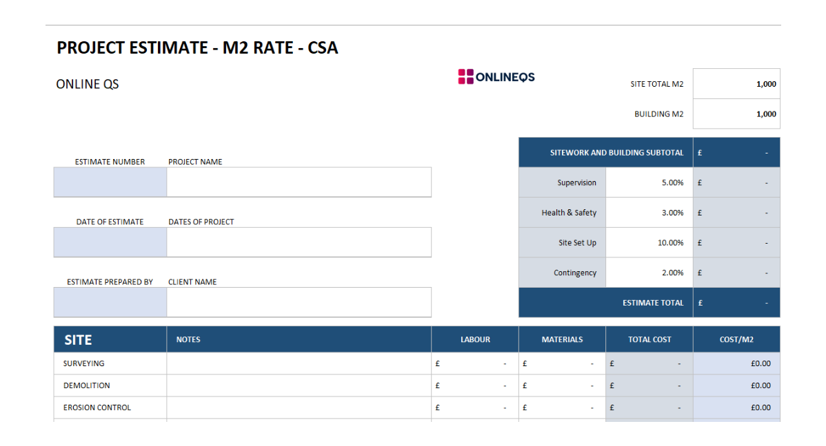 Downloadable QS & Estimating Templates